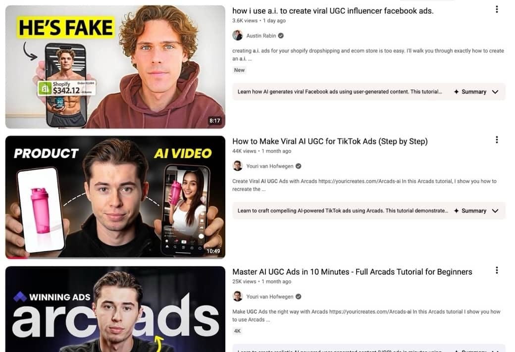 Making the video: Keep it simple: Use an AI platform so you can access the better models that create 1080p videos (instead of the Sora app, which only makes 720p vertical videos). Later, you can try specialized UGC AI tools like Arcads.